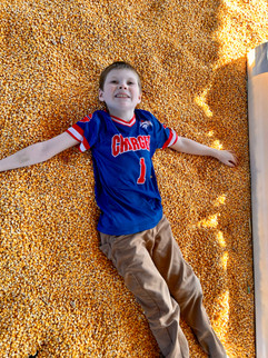 As Nolan got off the school bus, he was happy to see me and calmly held my hand as we waited in line. I expected him to bolt toward the big slide, but instead, he wandered toward the little playhouses. We walked around those, then he headed for the corn pit. He hardly ever wants to play in it, but this time he took his shoes off and got in! He wanted my phone, and while I was hesitant to let him have it, I set a timer on my watch and told him he could have it for 5 minutes. He turned on his favorite song and played in the corn for a little while, and once my timer went off, he handed me the phone and was ready to move on to something else! As I followed his lead, he walked to the gift shop, which was weird because he'd never been in there! Then, he walked to another area he'd never gone before: the snack shack! The lady behind the counter looked at him and said, "What can I get you today?" Which by the way, was awesome because most people talk to me instead of him. He said, "Popcorn" and waited patiently. I almost fell onto the ground right there! This kid just walked up to the counter and ordered his own food! I happily paid for it and he led me to a picnic table and sat down to eat. I can't describe the state of shock I was in. Me and Nolan were sitting at a picnic table at Bull Bottom Farms relaxing and eating some popcorn!